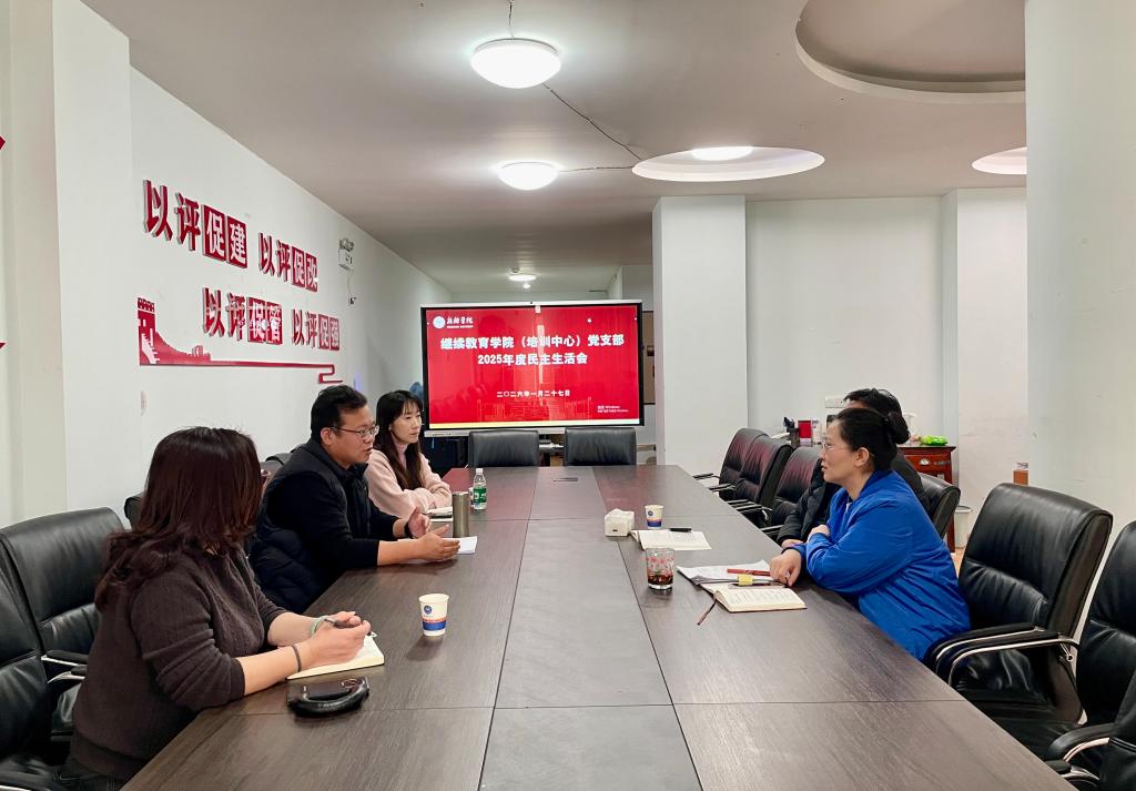 根据学校工作安排,1月27日上午,继续教育学院(培训中心)党支部在一楼会议室召开2025年度党员领导干部民主生活会。会议由党支部书记崔红志主持,领导班子成员参加会议。
